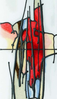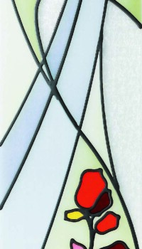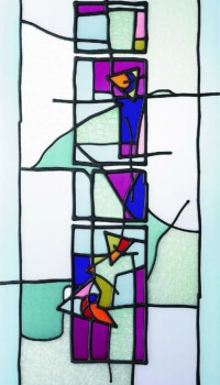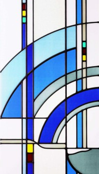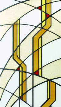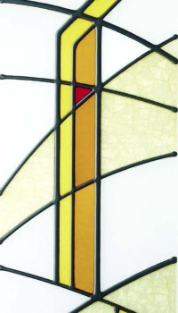 透明部分を多くとった構図は、ステンドに緊張感を持たせ、閃光をシンプルに表現。