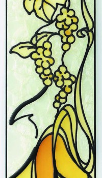 ブラウンからイエローのグラデュエーションの葡萄のモチーフから透る光はシャンパンに似た輝きに満ちています。